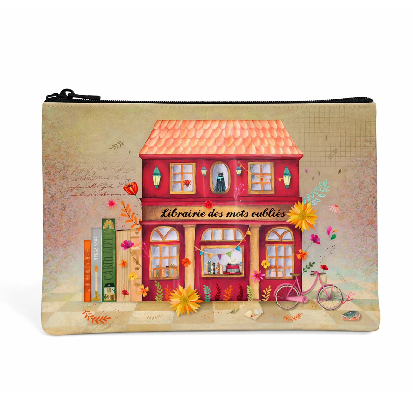 Plongez dans l’univers poétique de la Librairie des mots oubliés avec cette pochette zippée en velours (format 16×22 cm), idéale pour organiser maquillage, papiers ou essentiels du quotidien.