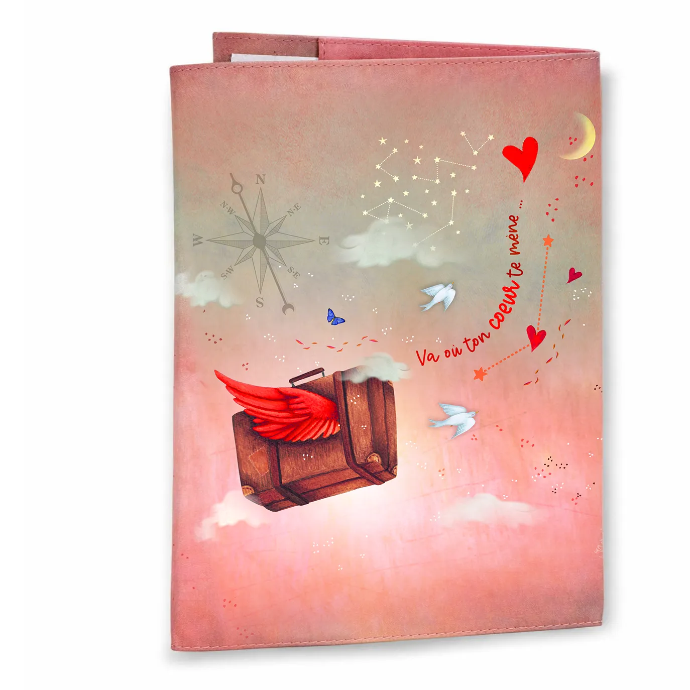 Le protège-cahier “Va où ton cœur te mène” a été imaginé comme une couverture élégante, capable d’envelopper les mots, les souvenirs et les premières pages importantes de la vie.