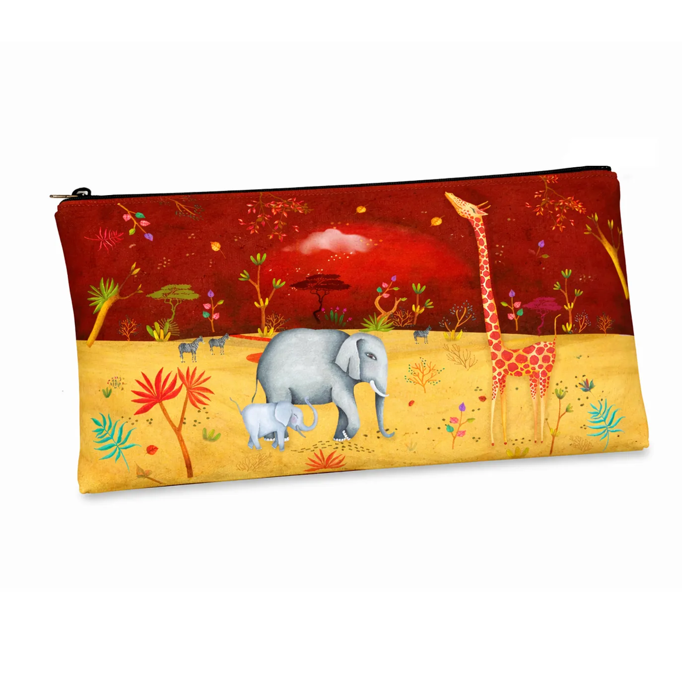 La trousse d’écolier – Safari capture cet esprit libre et lumineux. Sa forme rectangulaire est idéale pour accueillir crayons, stylos, feutres et petit matériel scolaire. Dotée d’une fermeture zippée solide, d’une doublure intérieure soignée et d’une impression numérique sur textile aux couleurs éclatantes, elle allie résistance et esthétisme. Lavable en machine, elle est parfaitement adaptée au rythme de la vie scolaire.