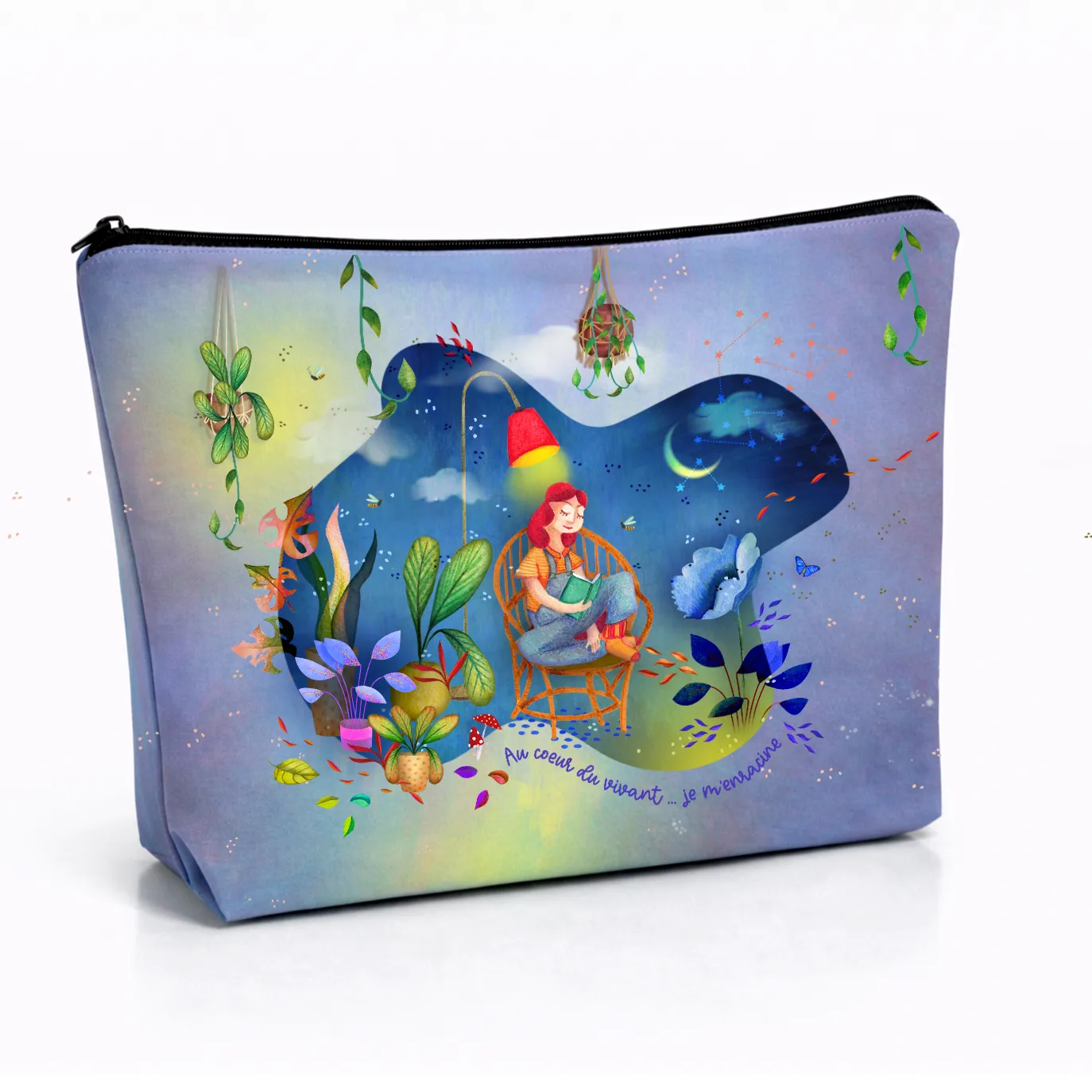 La trousse de toilette reprend ce décor onirique sur un somptueux velours imprimé, doux au toucher et visuellement intense. L’impression numérique haute qualité révèle chaque détail botanique, chaque ombre et chaque contraste lumineux, transformant cet accessoire en véritable objet artistique.